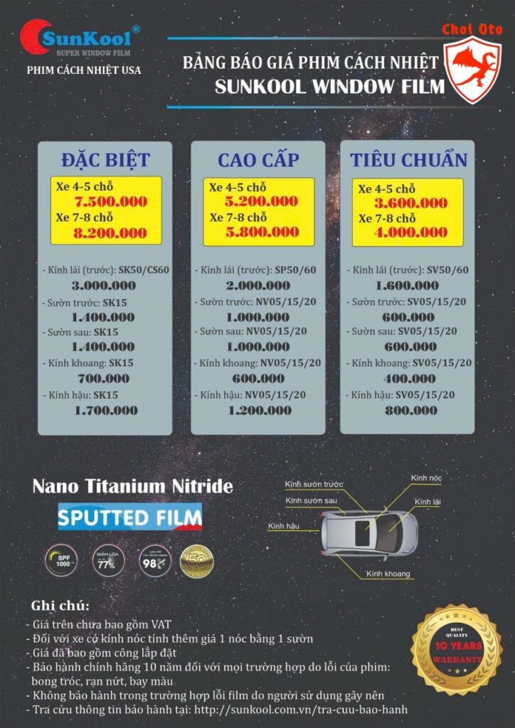 Bảng giá dán phim cách nhiệt SunKool