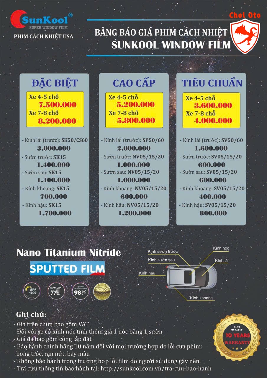 Khuyến mại đặc biệt tại Chơi Ô tô 🔥Chỉ từ #1tr500 DÁN FILM CÁCH NHIỆT SUNKOOL nhập khẩu từ Mỹ 💥