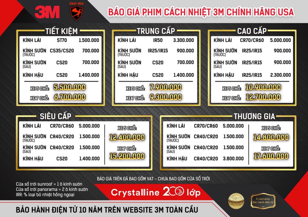 Bảng giá dán phim cách nhiệt 3M